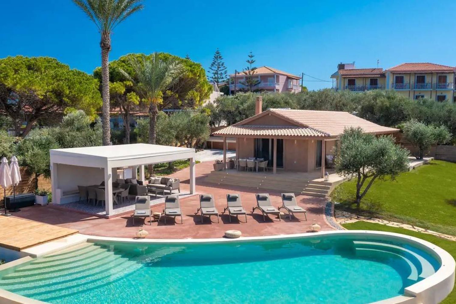 Villa Carvella is a luxury villa in Tsilivi — with sea views, just a short walk from the beach, with an infinity pool and private parking. Made for families and groups who want the island’s best feeling — sea views, space, and an effortless pace.